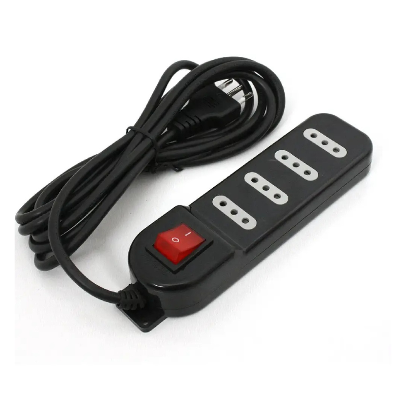 Alargador 3mt Multiple 4p Con Switch Negro